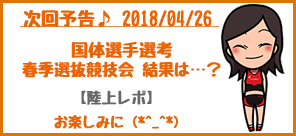 次回は国体選手選考春季選抜競技会の陸上レポートです。