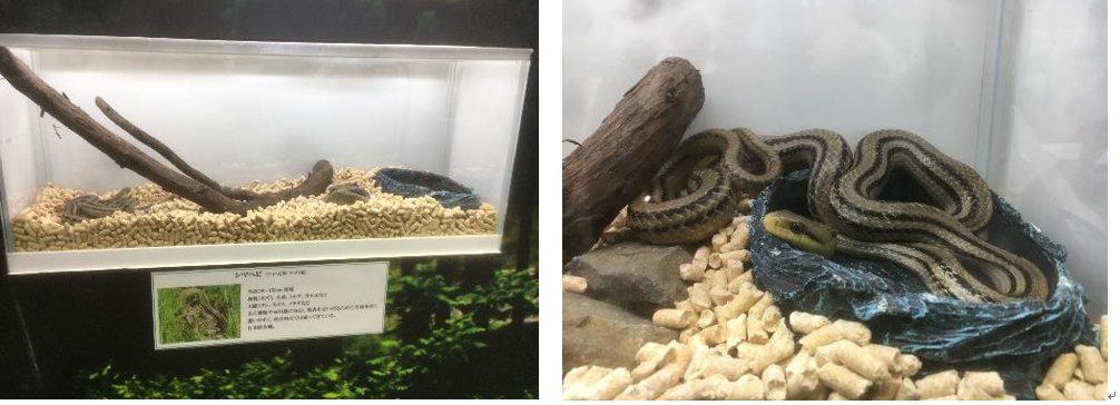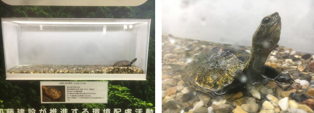 現場で保護をした生きもの&当社のビオトープで保護した生きもの達を展示。