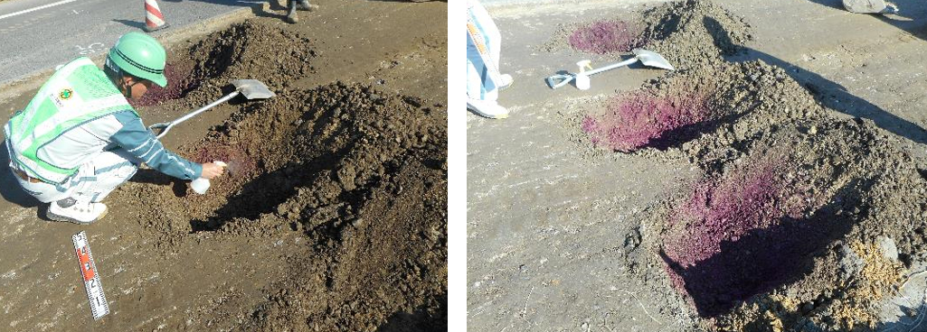 特殊な液体をかけて、紫色に変わったらセメントが混ざっている証拠になります(^ー゚)ノ