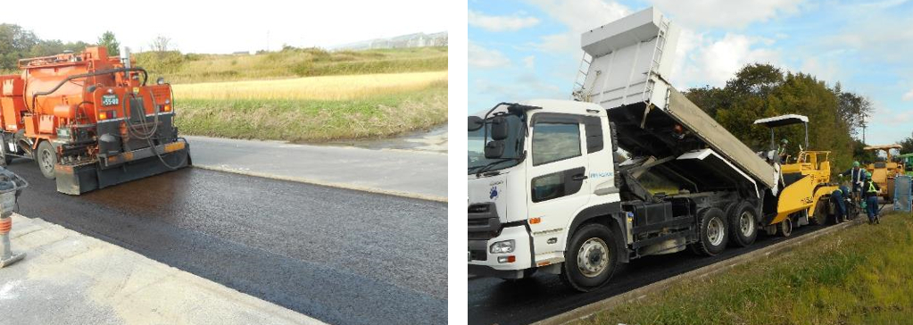 続いては、2回に分けてアスファルトを敷いていきます。