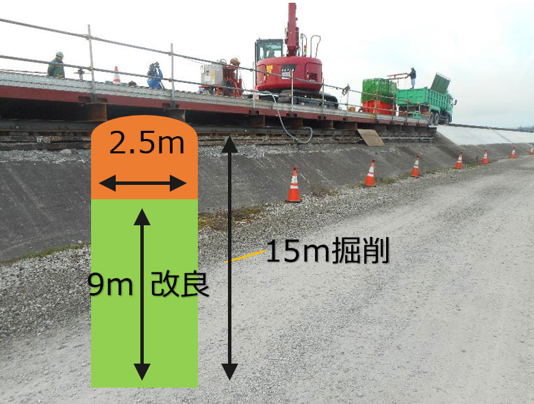 改良範囲は15m下から9mのところまで、直径2.5mの範囲です。