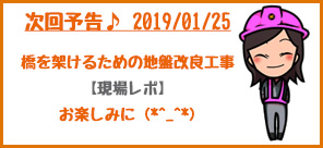 次回は、新しく橋を作るための地盤改良をしている現場のレポートです(^-^)