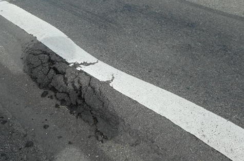 交差点の30m程手前の道路がこんなにも盛り上がっていました。