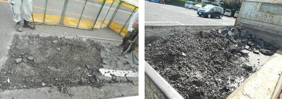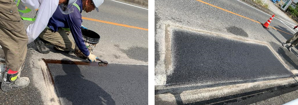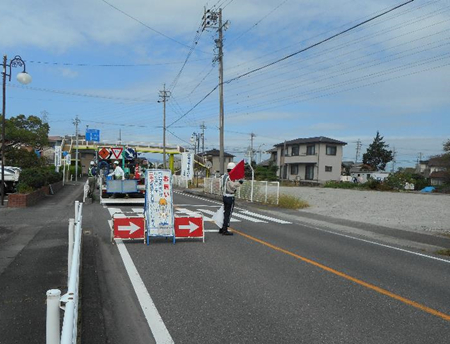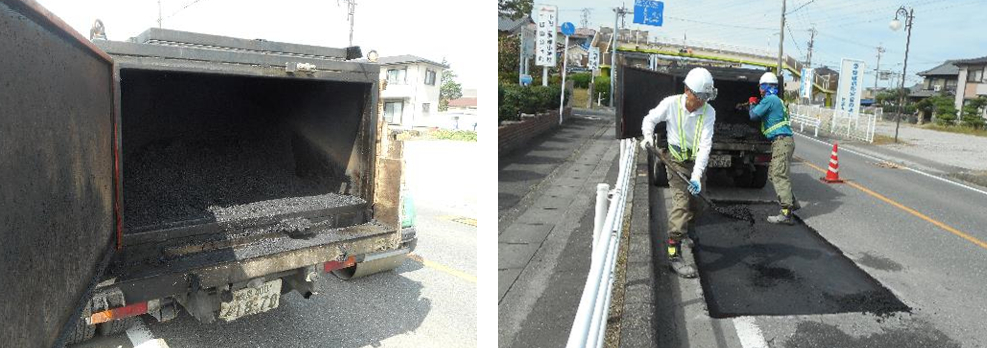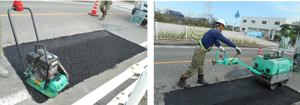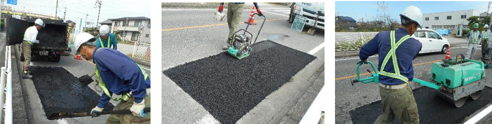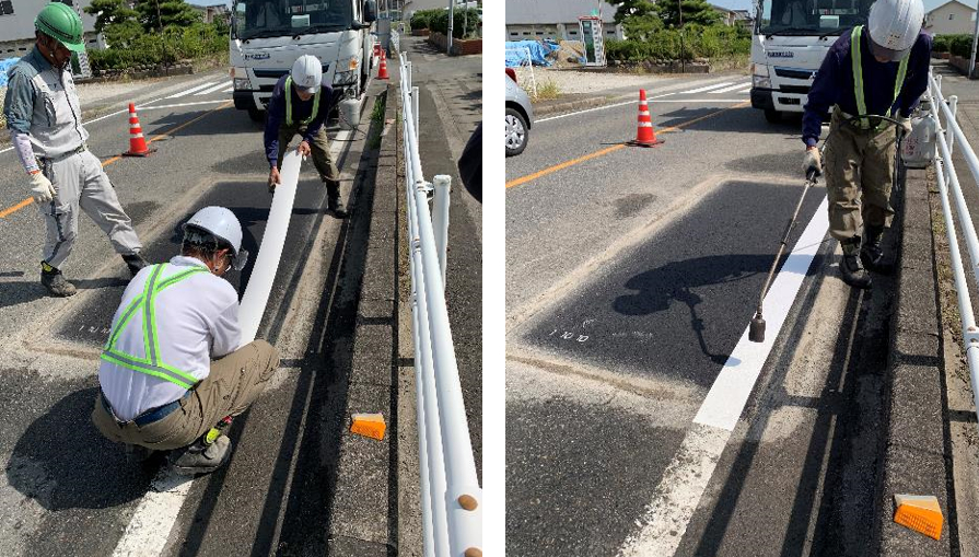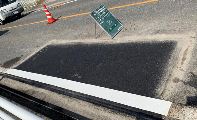 愛知県弥富市で行われた道路の維持補修工事をしている