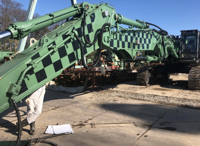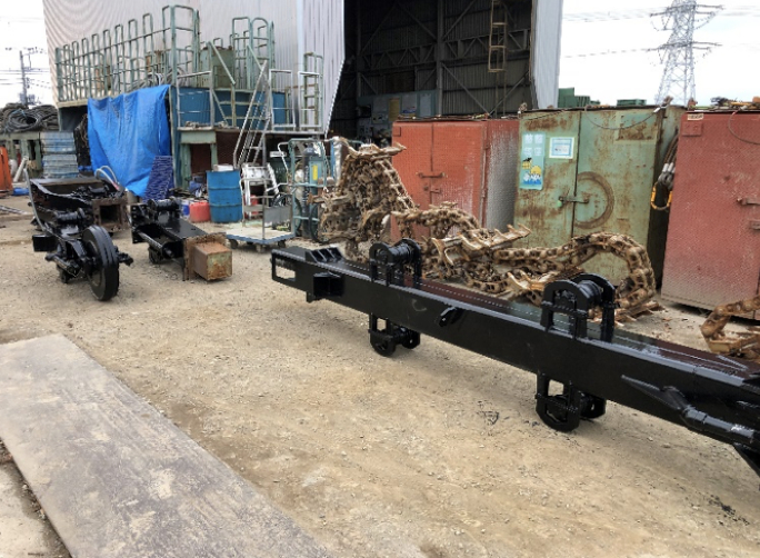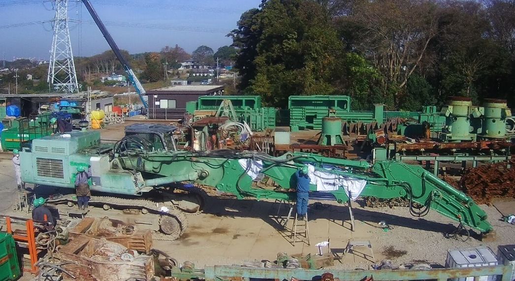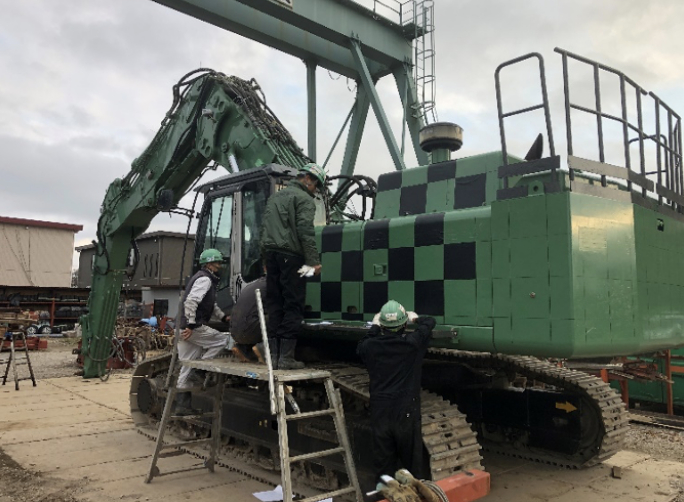 みんなで打合せを重ねていたところ、たまたま重機の全塗装をしているとの情報が…✨