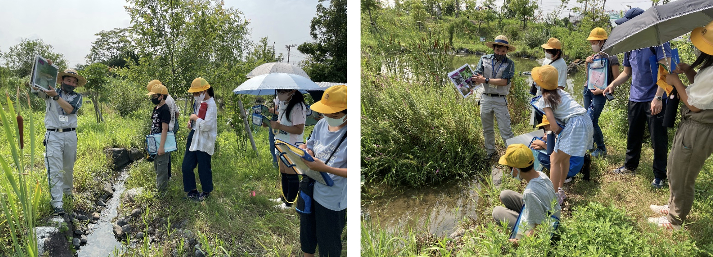 そして、2限目と3限目では、当社のビオトープへお越し頂きました。
