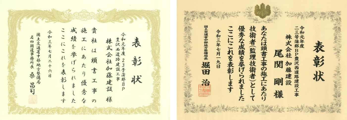 【23号蒲郡BP豊沢西道路建設工事】感謝状を頂きました!!