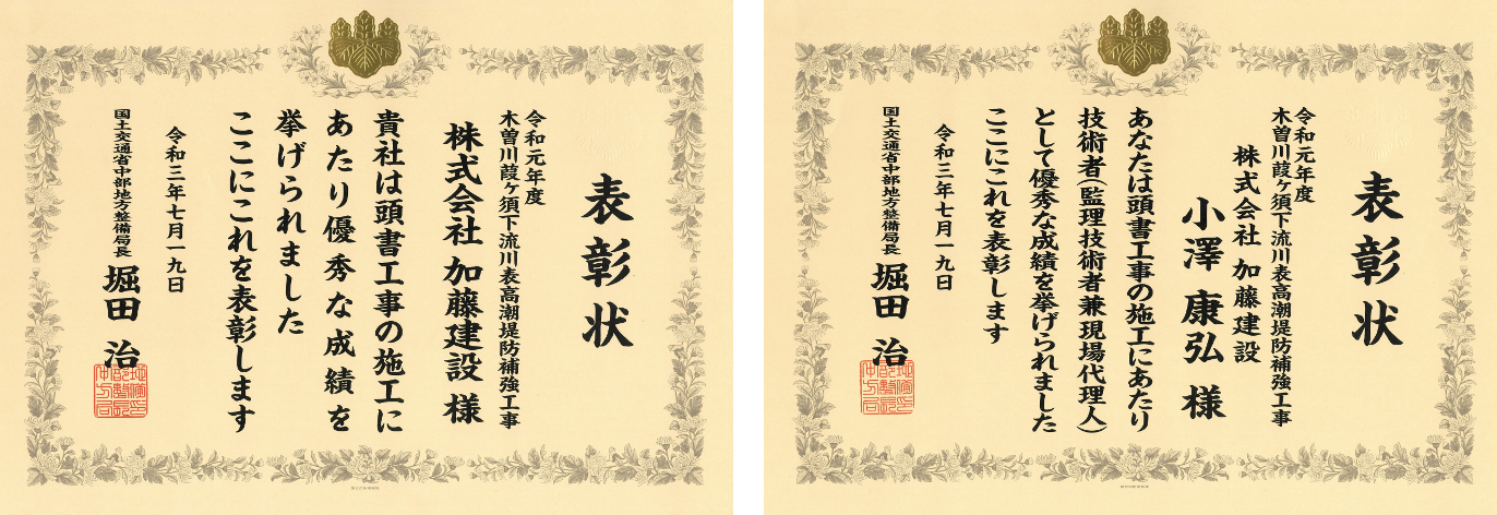 【優良工事・局長表彰、優良工事技術者・局長表彰】を