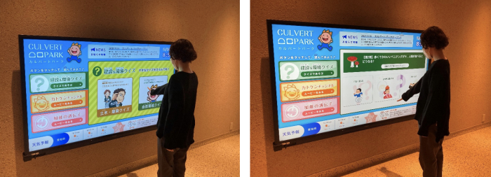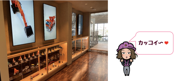 上にある大きなスクリーンには様々な重機が映し出されます。