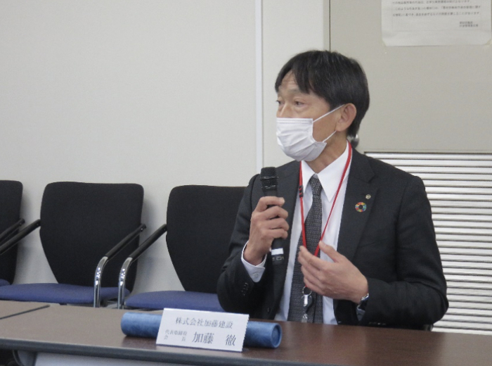 建設業のイメージを良くして「あこがれの職業No.1」を目指しているという会長の想いを話されていました。