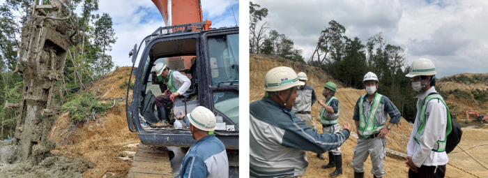 乗車体験や実際に地盤改良をしているところの見学もしていただきました。