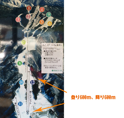 リフト乗り場から第一ペアリフトを越えて下ってくる