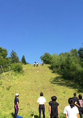 芝ゲレンデという絶壁のような坂を走ったり…。