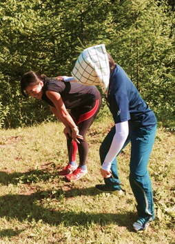 インターハイで二冠をとった後輩にもたれかかる私(笑)