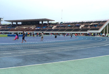 陸上競技用のゴムを敷いた走路のことを