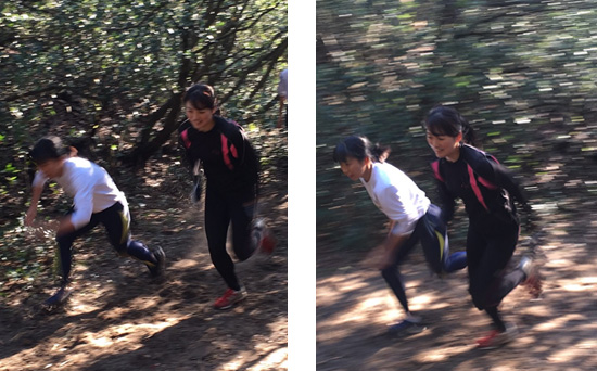 どんどん距離を短くして、競いながら駆け上がります。