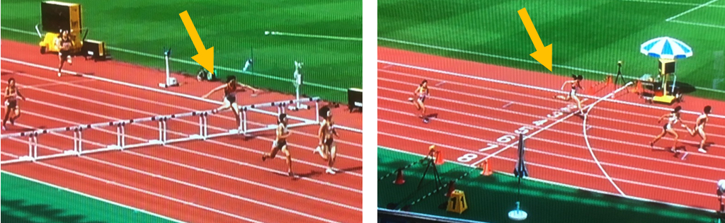 ハードルの間は9台目まで予定通りの歩数で行けましたが