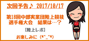次回は第18回中部実業団陸上競技選手権大会の陸上レポートです。