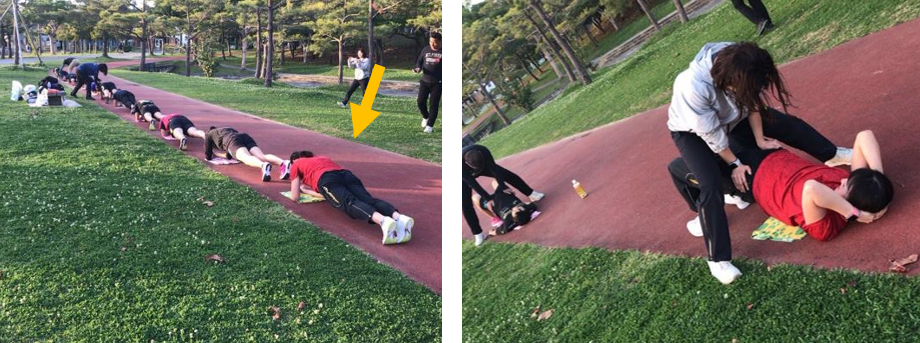 基本的な体幹はもちろん、ペアになって負荷をかけながらも。