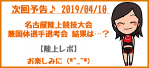 4月1.2.3週と連続で愛知県のパロマ陸上競技場で試合があるので