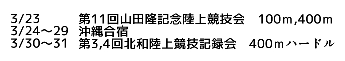 3/23に奈良の記録会に出場し、その次の日から沖縄合宿、