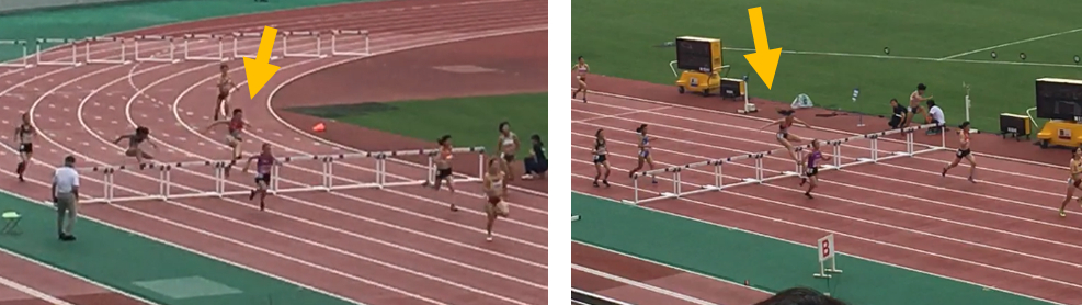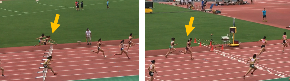 インターバル(ハードルとハードルの間)が速く走れずおいてかれています。