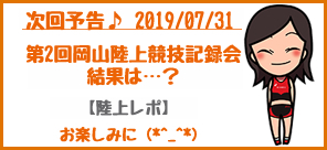 次の大会は7月27日に岡山県で行われる第2回岡山陸上競技記録会です。