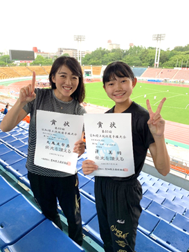 2位だった一緒に練習をやっている後輩(右)と一緒に写真を撮りました(*^^*)